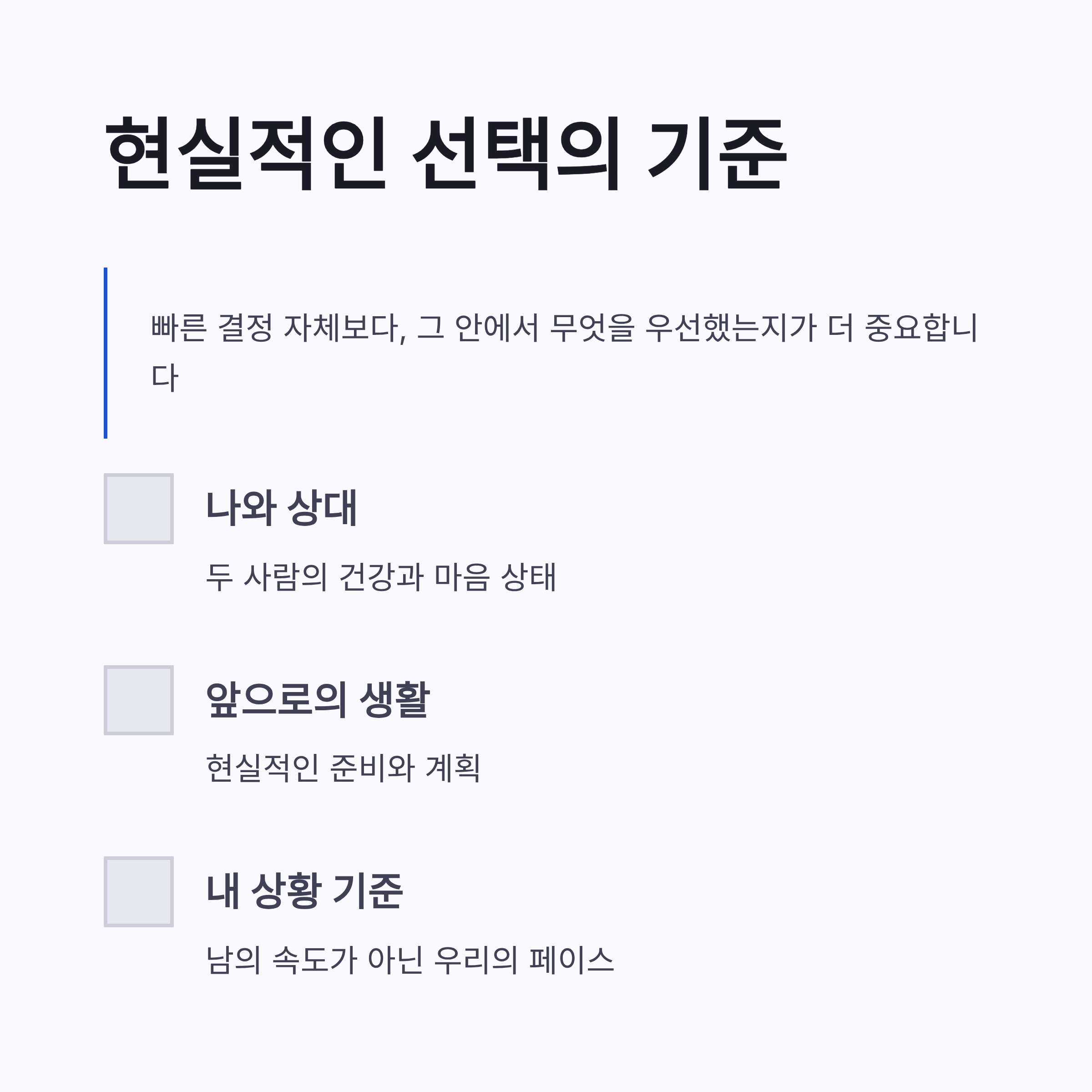28기 영자처럼 예정보다 결혼을 앞당기는 경우, 현실적인 체크가 진짜 중요해요. 감정은 순간이지만, 결혼은 생활이니까요. 저도 주변에서 비슷한 케이스를 봐서 더 와닿았는데요. 아래는 빠른 결정을 앞둔 커플들이 실제로 점검하면 좋은 항목들이에요.