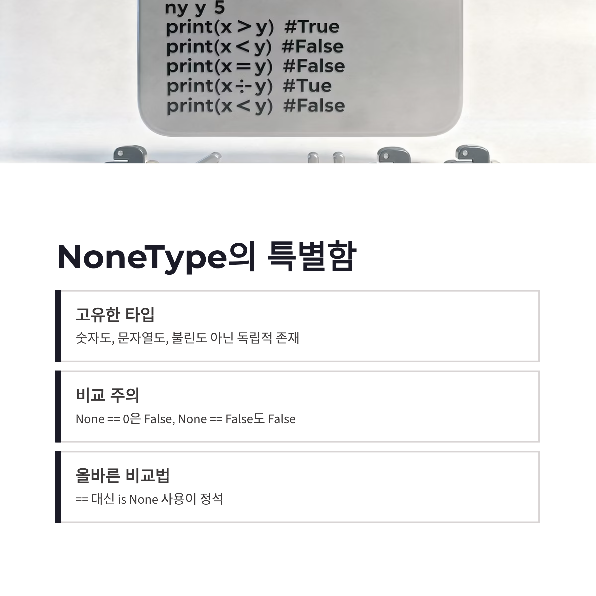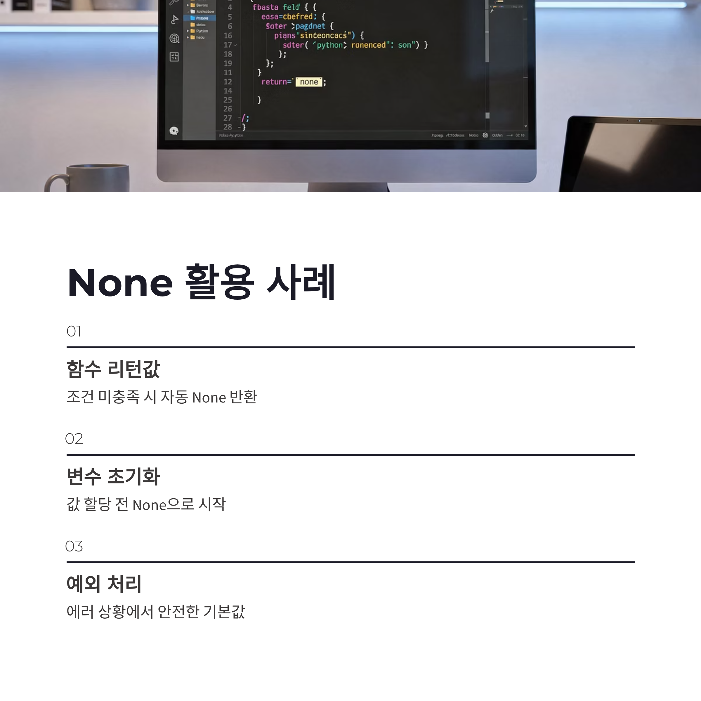 #None #None이해 #None활용법 #파이썬기초 #Python공부 #프로그래밍기초 #NoneType #초보개발자 #코딩공부 #파이썬독학 #개발자일상 #코드가독성 #버그예방 #조건문 #함수리턴