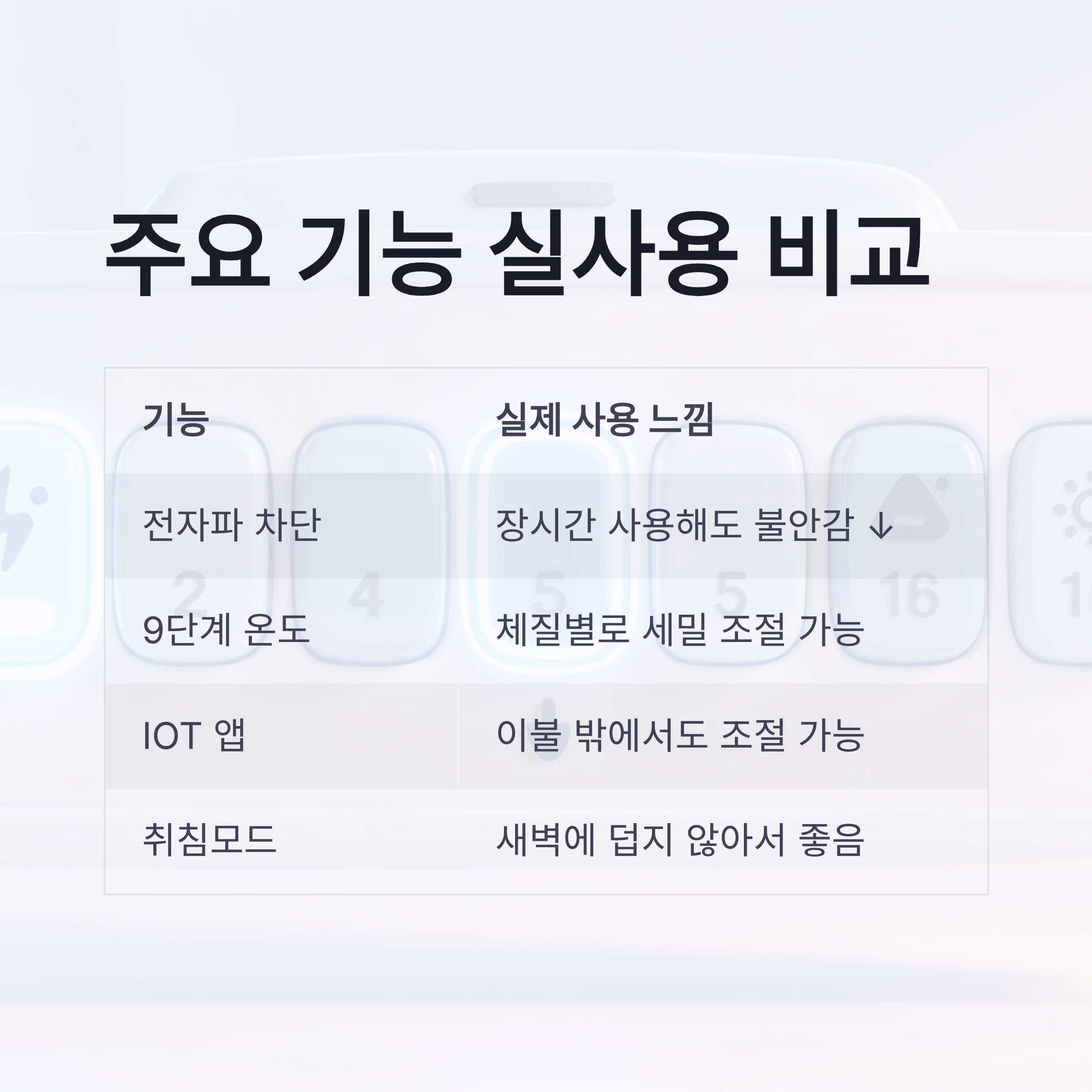 이 매트의 핵심은 역시 IOT 스마트폰 앱 조절이더라구요. 솔직히 처음엔 “이게 필요할까?” 했는데… 써보니까 못 끊겠음ㅋㅋ 외출 전에 미리 켜두고, 잠들기 전엔 취침모드로 바꾸고 이런 게 너무 자연스러워요. 곰표한일 탄소매트는 온도 9단계 조절에 급속가열 기능까지 있어서, 추운 날 침대 들어갈 때 진짜 살 것 같더라구요.