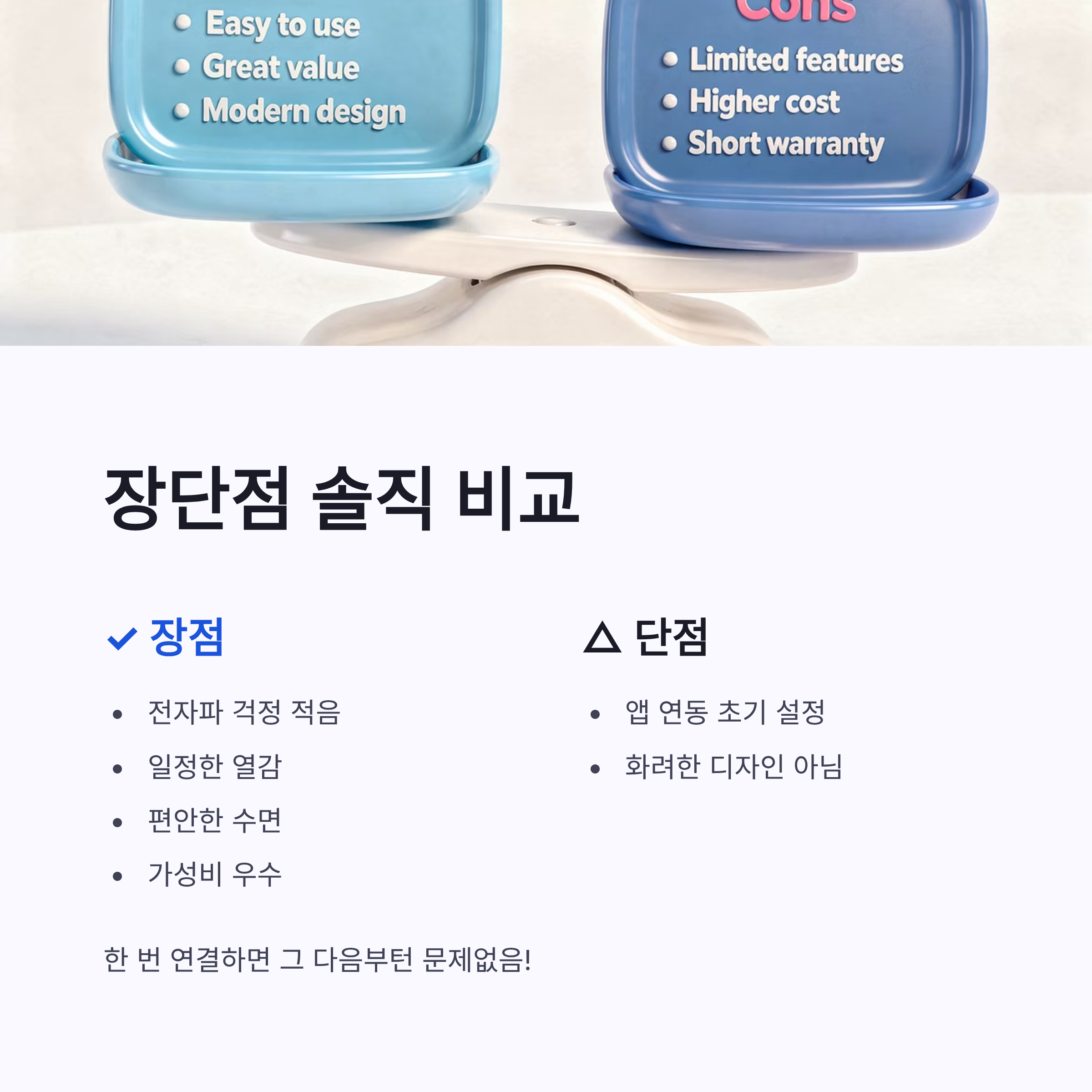 요즘 전기매트 종류가 워낙 많잖아요. 그중에서 이 제품은 가성비 + 안전성 + 편의성 쪽에 확실히 점수 주고 싶어요. 장점부터 말하자면 전자파 걱정이 적고, 열이 일정해서 몸이 편함. 단점이라면? 스마트 기능이 있다 보니 앱 연동 처음 할 때 살짝 버벅일 수 있음ㅎㅎ 근데 한 번 연결해두면 그 다음부턴 문제 없었어요. 곰표한일 탄소매트는 화려한 디자인보단 실사용 위주라, 겨울에 진짜 잘 쓰게 되는 타입이더라구요.