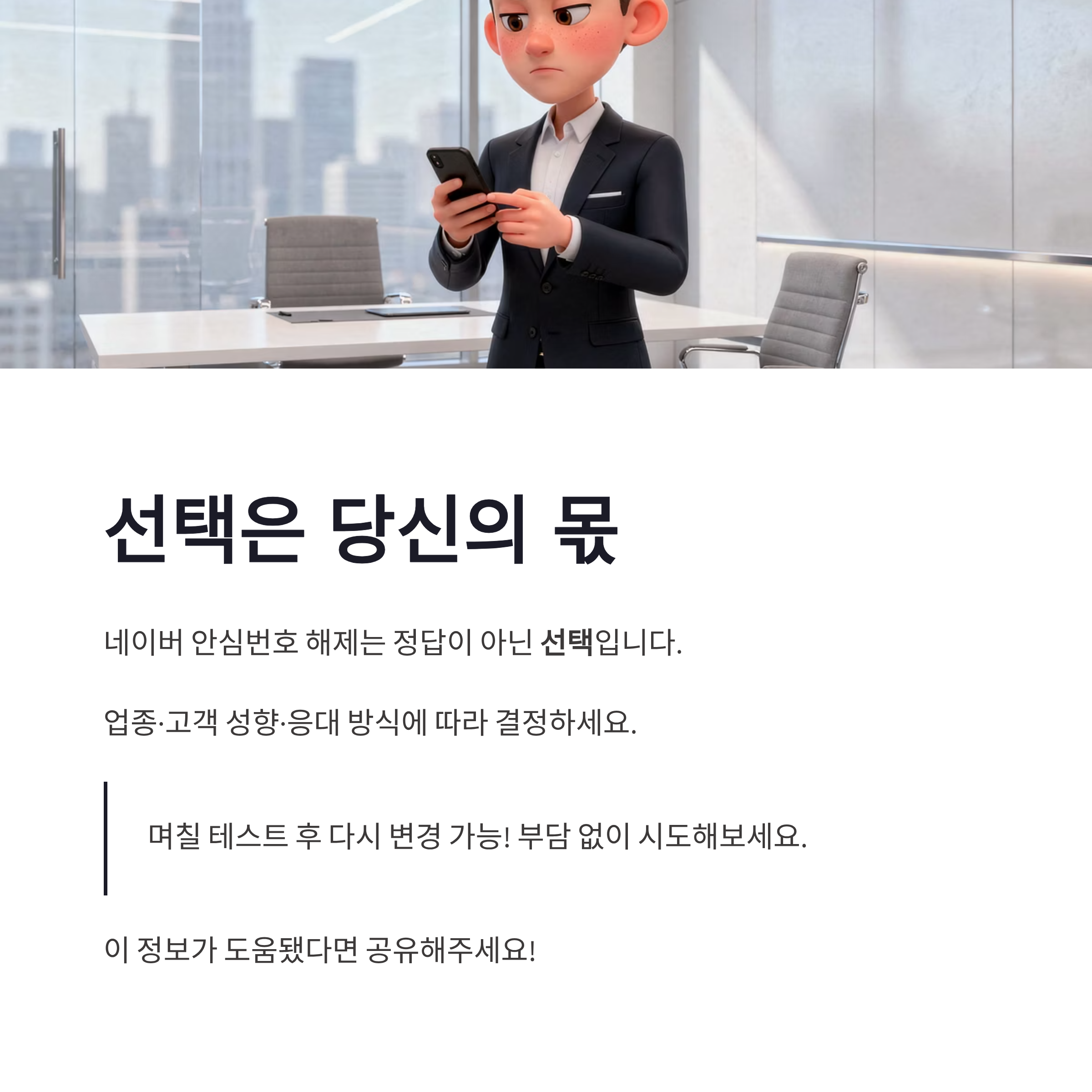 정리해보면 네이버 안심번호 해제는 무조건 해야 하는 것도, 무조건 피해야 하는 것도 아니더라구요. 내 업종, 고객 성향, 전화 응대 방식에 따라 갈리는 문제 같았어요.