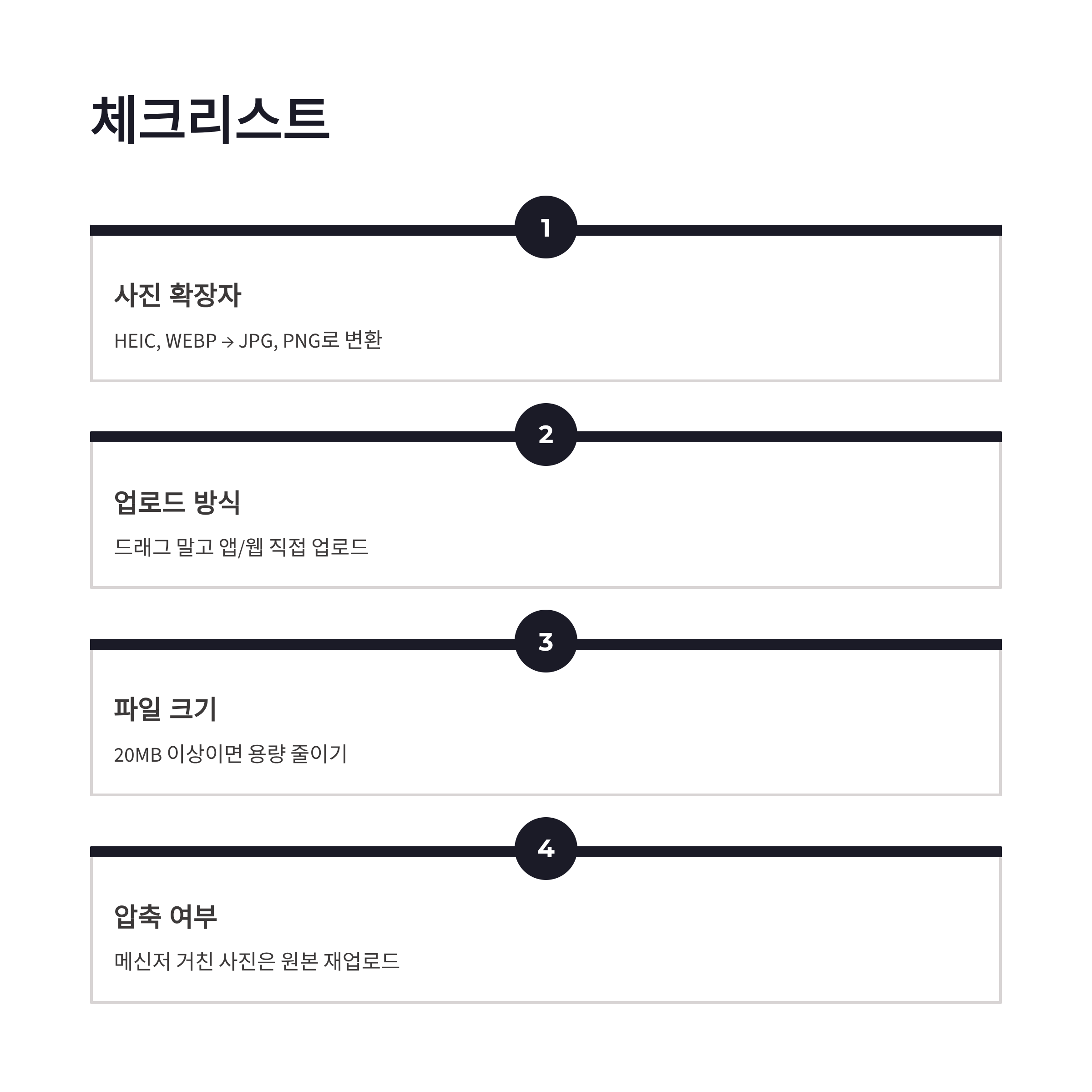 | 사진 확장자 | HEIC, WEBP 등 | JPG, PNG로 변환 |